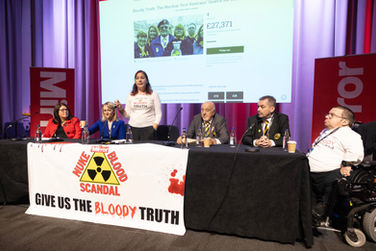 LABRATS were invited to attend a panel at the Labour Party Conference at a fringe event hosted by the Daily Mirror to promote the blood scandal. We were happy to attend and share our stories to the conference delegates. Angela Raynor MP, Rebecca Long-Bailey MP and Rachel Hopkins MP all spoke at the event with Angela committing to implementing assistance for Nuclear Veterans if they are elected.